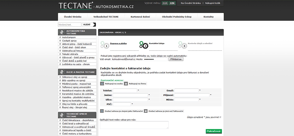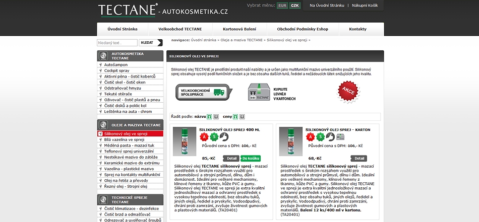 Internetový obchod www.autokosmetika-tectane.cz se zaměřením prodeje na autokosmetiku. Obsahuje importy, exporty zboží, správa objednávek, statistik, heureka a další.